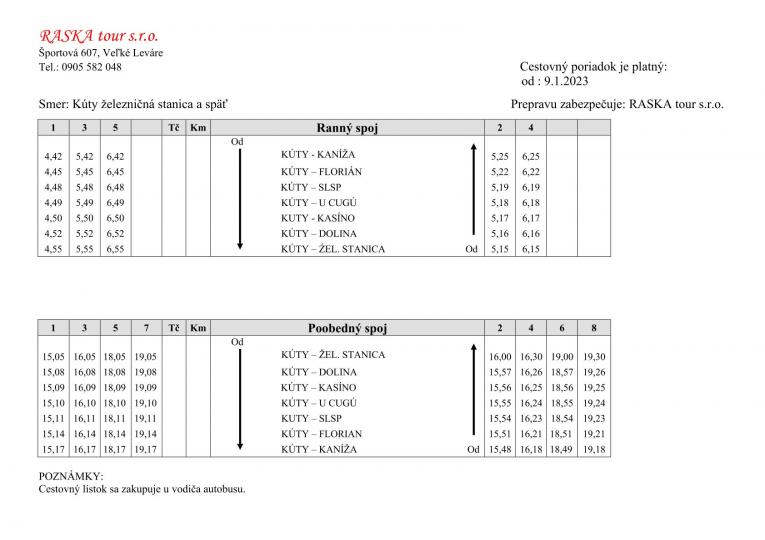 Obec Kúty a Rasca tour oznamujú občanom, že nakoľko do 30.12.2023 nikto nepripomienkoval aktuálny cestovný poriadok, zostáva naďalej v platnosti.