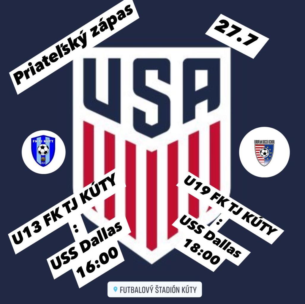 16:00 hod. U13 FK TJ Kúty : USS Dallas 18:00 hod. U19 FK TJ Kúty : USS Dallas.