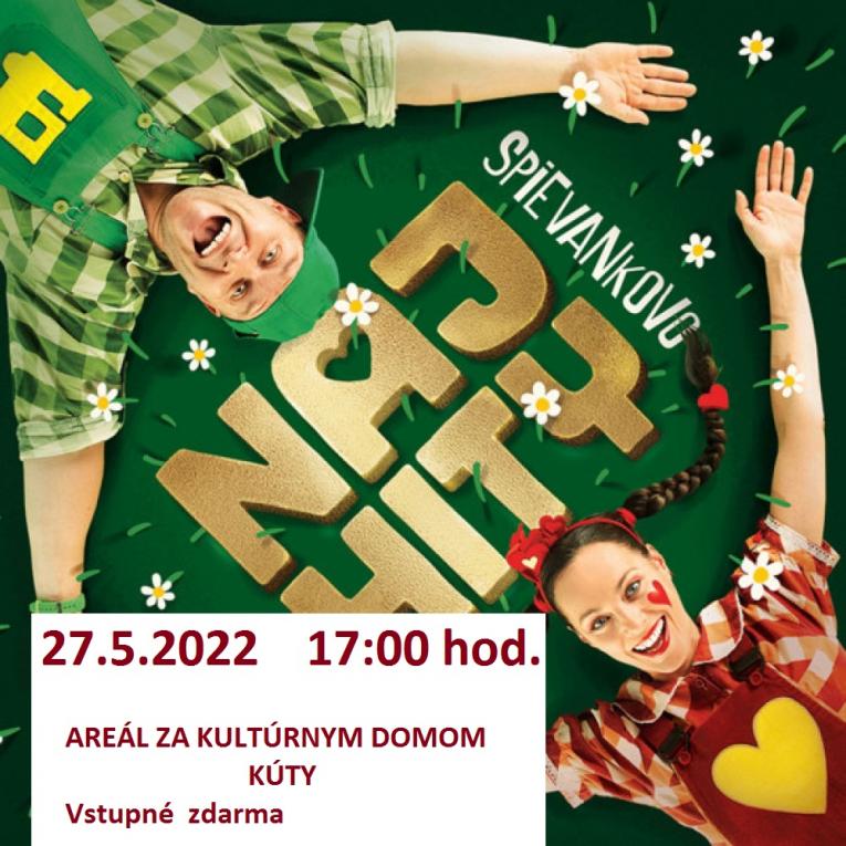 Obec Kúty pozýva všetky deti na koncert SPIEVANKOVO- NAJ HITY, ktorý sa uskutoční dňa 27.mája 2022, t.j piatok o 17:00 hod. v areáli za kultúrnym domom v Kútoch.
