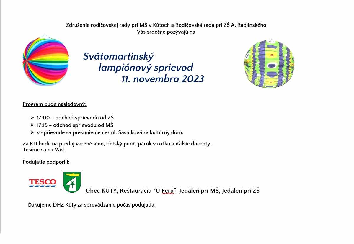 ZMENA!!! Z dôvodu nepriaznivej predpovede počasia na piatok, je Svätomartinský lampionový sprievod presunutý na 11.novembra 2023, t.j. na sobotu od 17:00 hod.