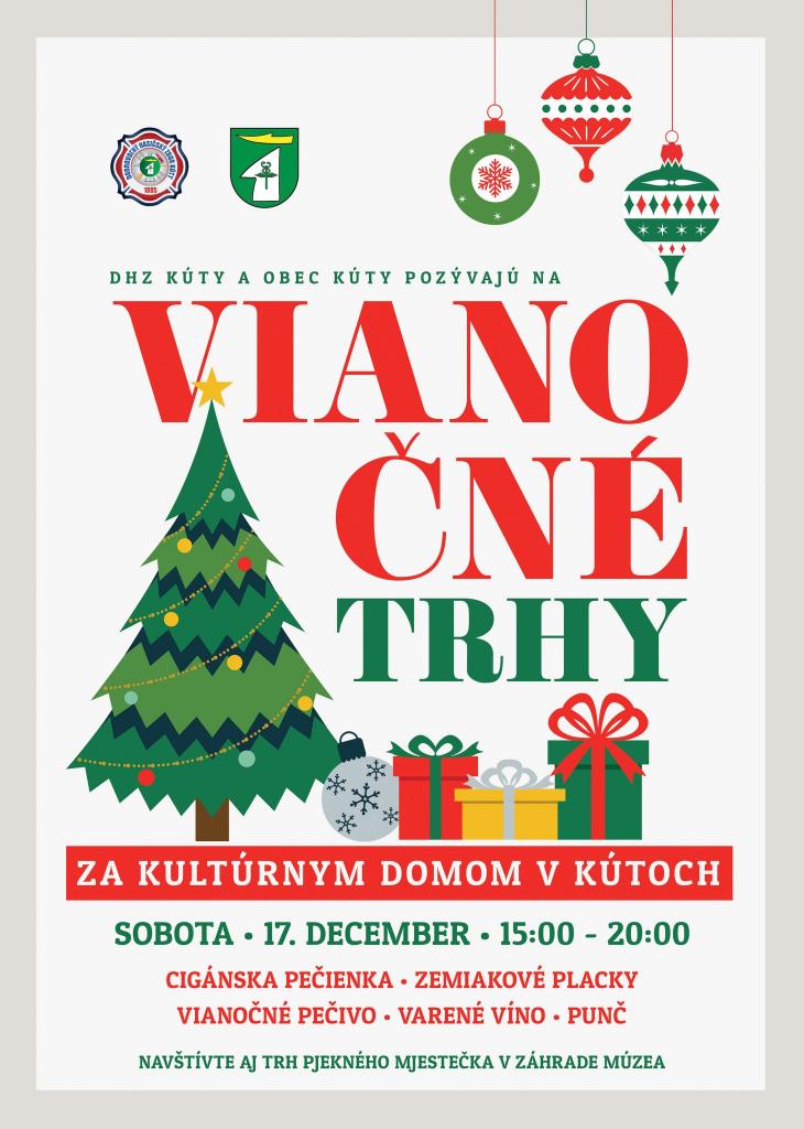 DHZ Kúty a Obec Kúty pozývajú občanov na VIANOČNÉ TRHY , ktoré sa budú konať dňa 17.decembra, t.j. v sobotu od 15:00 hod. do 20:00 hod. za kultúrnym domom v Kútoch. Môžete sa tešiť na cigánsku pečienku, zemiakové placky, vianočné pečivo, varené víno, punč.