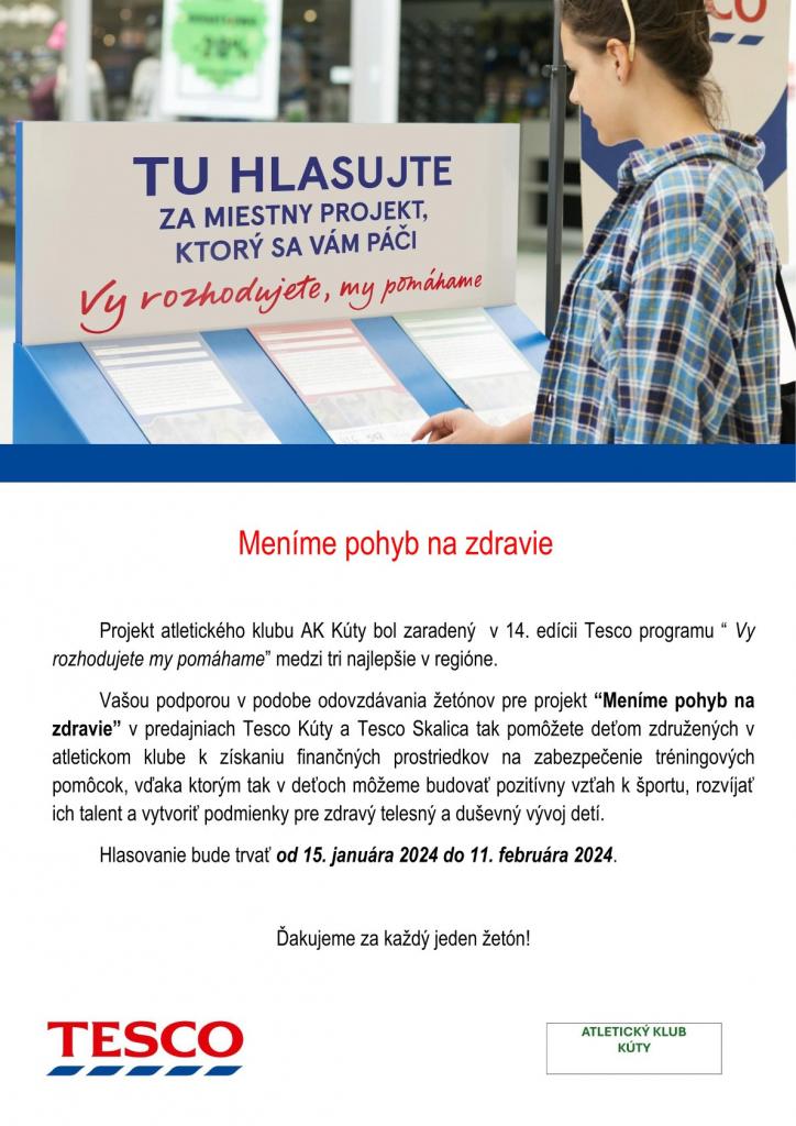 Atletický klub Kúty sa zapojil do Tesco programu " Vy rozhodujete, my pomáhame", kde so svojím projektom Meníme pohyb na zdravie bol vybraný medzi tri najlepšie v regióne. Jeho umiestnenie teraz závisí od získania najviac hlasov (žetónov) v predajniach Tesco Kúty a Tesco Skalica.